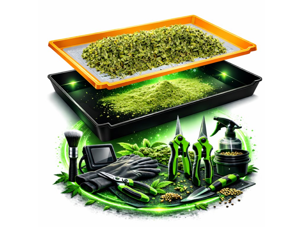 Praktický a ergonomický pracovní podnos navržený pro efektivní ruční zpracování sklizně. Flat Collection Tray pomáhá udržet pracovní prostor přehledný, minimalizuje nepořádek a umožňuje snadné oddělení jemných částic od většího materiálu.